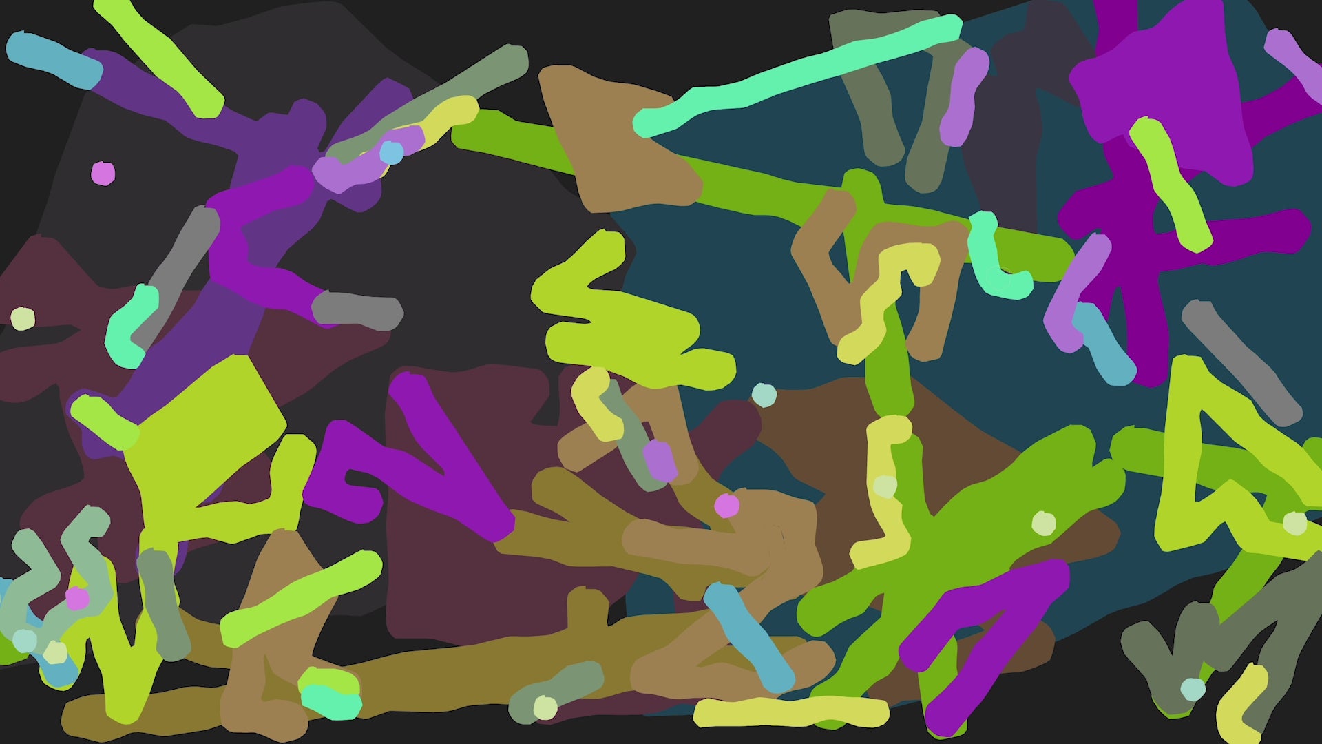 They are drawn using an algorithm that I created by watching my own use of drawing tools. And they are coloured using an algorithm that is not a million miles away from that used by AARON at one point. The results function as images without necessarily fully mimicking any existing human aesthetics.