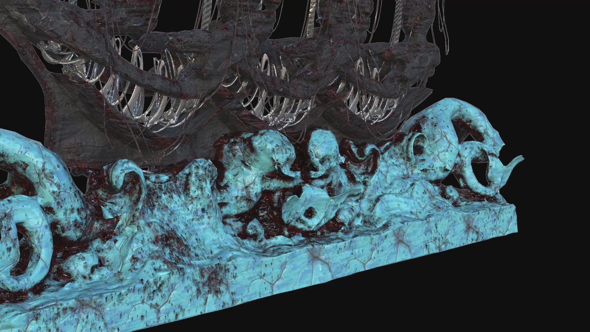 Auriea Harvey’s Black Ship (2024), commissioned by KADIST, encompasses a sculptural black ship, a large-scale printed mural, and an augmented reality component that activates the piece in the exhibition space. Originating from early interactions with AI image generators before restrictions were imposed around the word ‘slave’, the project began, in Harvey’s words, through “talking with an inhuman system about something inhumane.” The resulting conceptual prototypes, merging the Black body with a transatlantic slave ship, were reclaimed and reimagined as a vessel of maternal presence and mutiny, and a ship that cannot sail. First developed for Apophenia Interruptions, a collaboration between KADIST and Centre Pompidou, Paris, the work exists in both physical and digital form, inviting viewers to encounter its layered meanings through multiple modes of engagement.