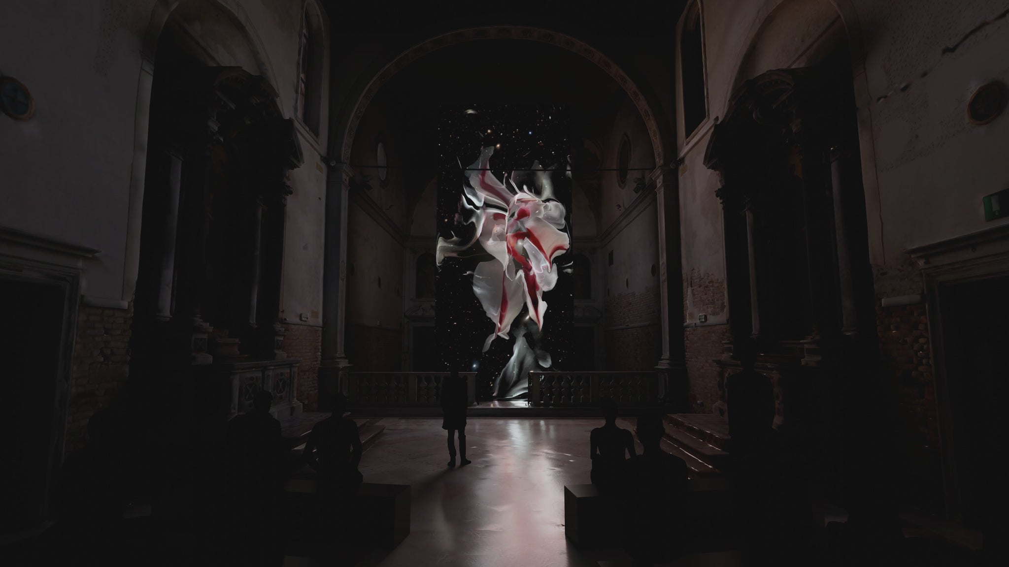 Boundaries was commissioned as part of the 2024 Venice Art Biennale for the Chiesa di Santa Maria della Visitazione Church in Venice. It was exhibited as a 30 ft tall, 13 ft wide LED screen installation, exhibited throughout the biennale from April to November 2024, and visited by over 90,000 visitors.